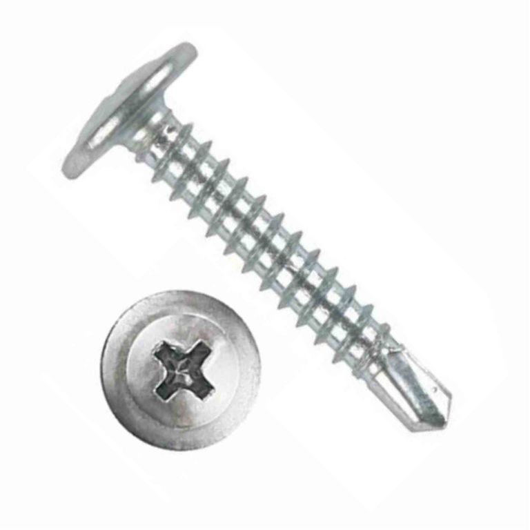 Стальной саморез с прессшайбой со сверлом по металлу. Произведен из углеродистой стали, имеет белое цинковое покрытие. Сверло позволяет вкручивать метиз без предварительного сверления. Благодаря гальваническому цинкованию крепеж обладает повышенным сроком службы, не боится влаги. Широкая головка изделия обеспечивает отличное сцепление благодаря большой площади соприкосновения с монтируемой деталью. Форма изделия со сверлом не оставляет царапин во время установки. Используется для монтажа элементов конструкций к металлическим профилям и листам (установка заборов, производство сэндвич-панелей и т.д.).