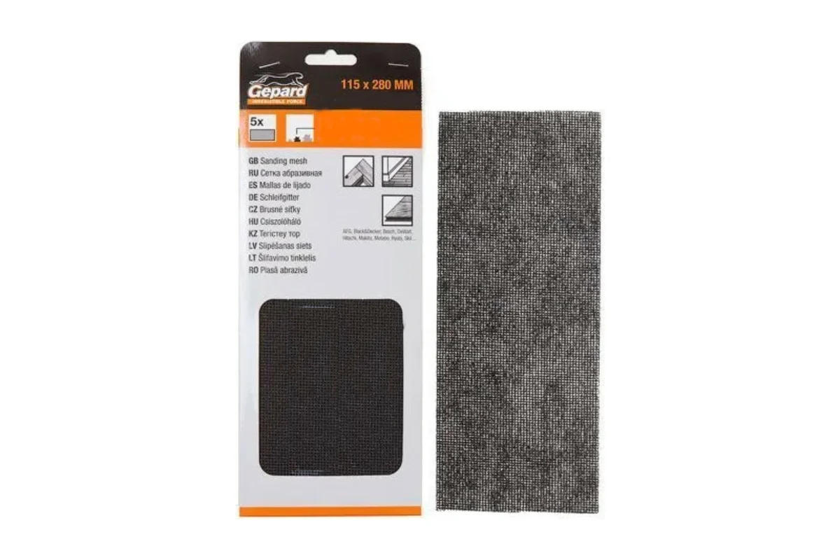Сетка абразивная GEPARD служит для шлифования металлических поверхностей, гипсокартона и для выравнивания штукатурных поверхностей. В качестве основы используется сетка из гибкого стекловолокна. Абразивный материал нанесен с обеих сторон, а сетчатая структура препятствует забиванию ячеек продуктами обработки, удаляя всю образующуюся пыль через отверстия.