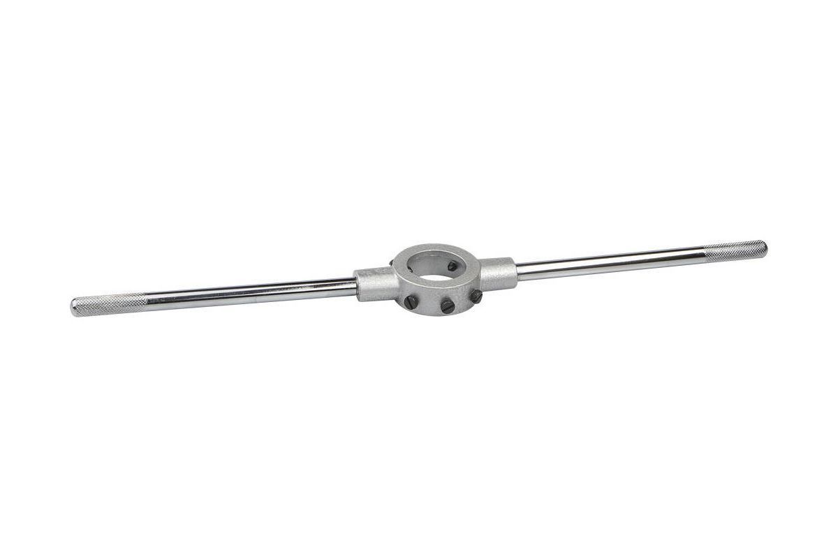 Плашкодержатель 20х7мм для М3, М4, М5 Зубр Мастер выполнен из цинкоалюминиевого сплава. Инструмент удобен в использовании за счет надежного удержания плашек и более качественного нарезания наружной резьбы.На рукоятках присутствует специальная хромированная накатка, которая защищает от коррозии и предотвращает выскальзывание из рук во врем работы