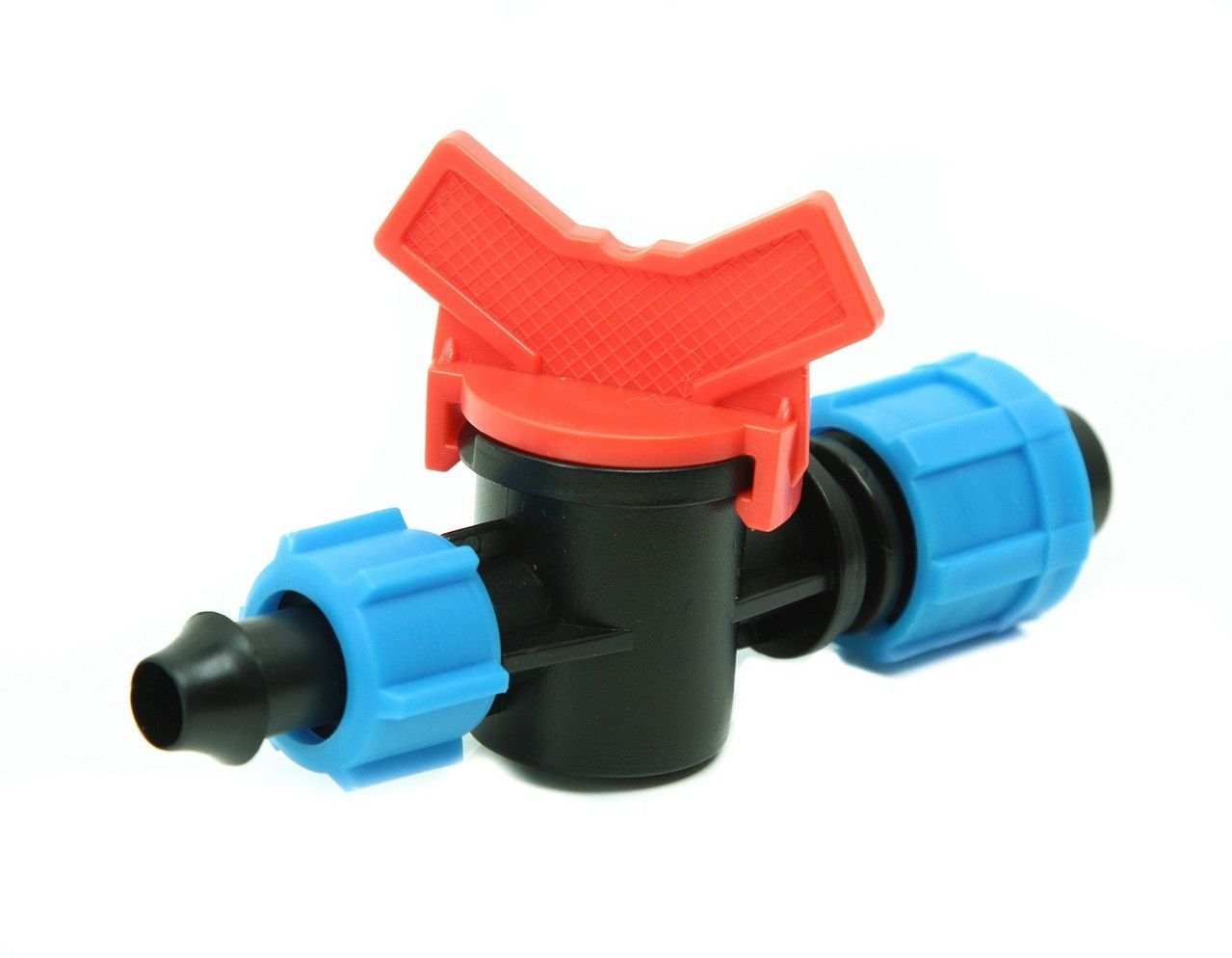 Кран стартовый с поджимом применяется для построения систем капельного полива с использованием капельной ленты. Монтируется стартовый кран в отверстие в стенке магистральной ПВХ трубы минимального диаметра 17 мм.С противоположной стороны крана одевается капельная лента и фиксируется поджимной гайкой. Изготавливается кран из высококачественного сырья, устойчив к механическим нагрузкам, действию водорастворимых удобрений и ультрафиолету.